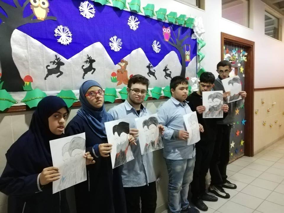 بمناسبة العيد الأربعين لانتصار الثورة الإسلامية في إيران، وتحت عنوان "رسمة ولون"، قام تلامذة الصف الثاني إعدادي في مركز الامداد للرعاية والتأهيل - زقاق البلاط - بيروت بتلوين صور الإمام الخميني (قده) والسيد علي الخامنئي (حفظه المولى) بأناملهم الذهبية حيث أضافت رونقاً وزهواً على جمالية الصورة.