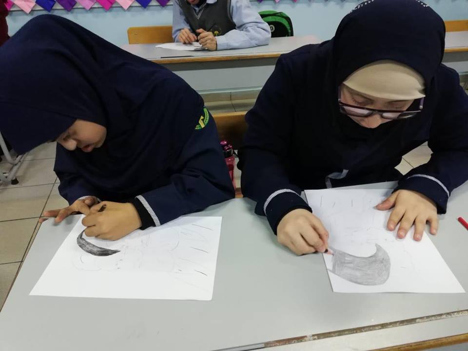 فيما أقام الصف الاول في المركز نشاطاً فنياً تميز بالدقة والتقنية عبر تطبيق صورة الإمام الخميني (قده) بأناملهم الصغيرة فتحولت الصورة إلى تحفة فنية رائعة.
