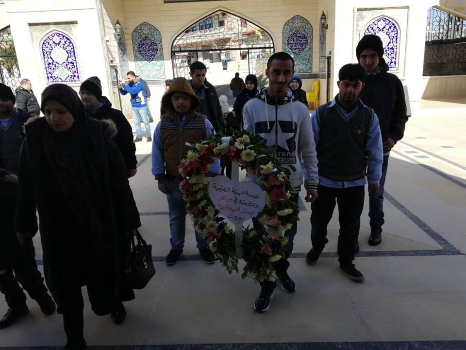 في أجواء أسبوع المقاومة الإسلامية وذكرى الشهداء القادة، زارت مجموعة من تلامذة مركز الإمداد للرعاية والتأهيل - بيروت - زقاق البلاط، مقام سيد شهداء المقاومة الإسلامية العلّامة السيد عباس الموسوي في بلدة النبي شيث البقاعية، حيث وضع التلامذة إكليلا من الورد على ضريح الموسوي وزوجته وابنهما تحية إجلال وإكبار للقادة والشهداء. وقد استقبل القيّمون على المقام في قاعة الشرف التلامذة بحفاوة، فيما قدم التلامذة ذوي الاحتياجات الخاصة باقة متنوعة من الأناشيد والأدعية والكلمات العفوية التي تكللت بالتسامح وعربون وفاء لمسيرة الجهاد والمقاومة.