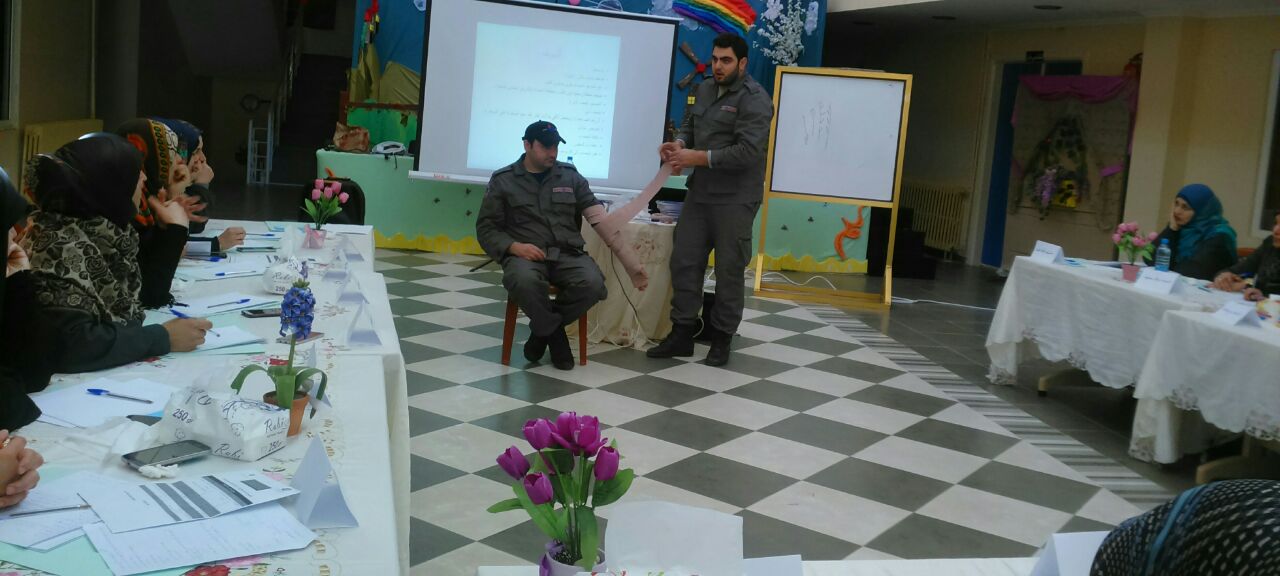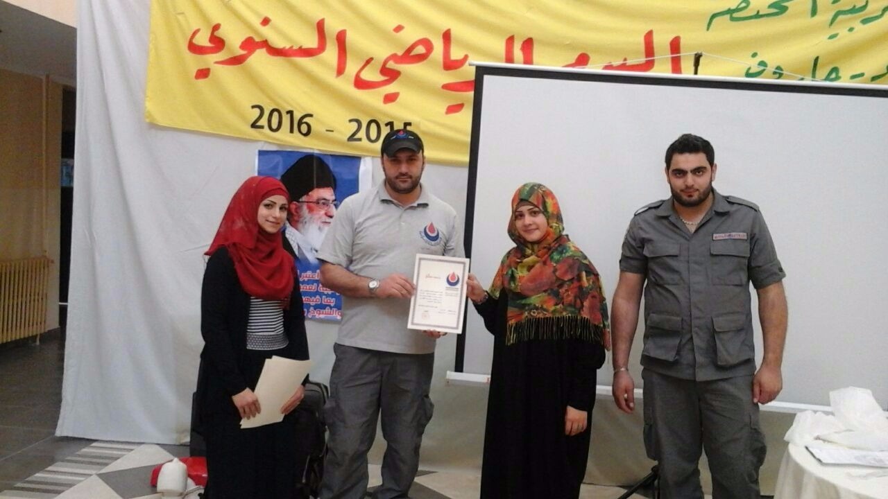وبتاريخ 30-4-2016 تم تطبيق مبادئ الإسعافات الأولية بمشاركة جميع المربيات، حيث خضعت المشاركات لاختبار خطي نهائي ووزعت عليهن الإفادات. كما قدم مركز الإمداد للتربية المختصة شهادة تقدير وهدية رمزية للمدربين شكراً لجهودهم و تعاونهم.