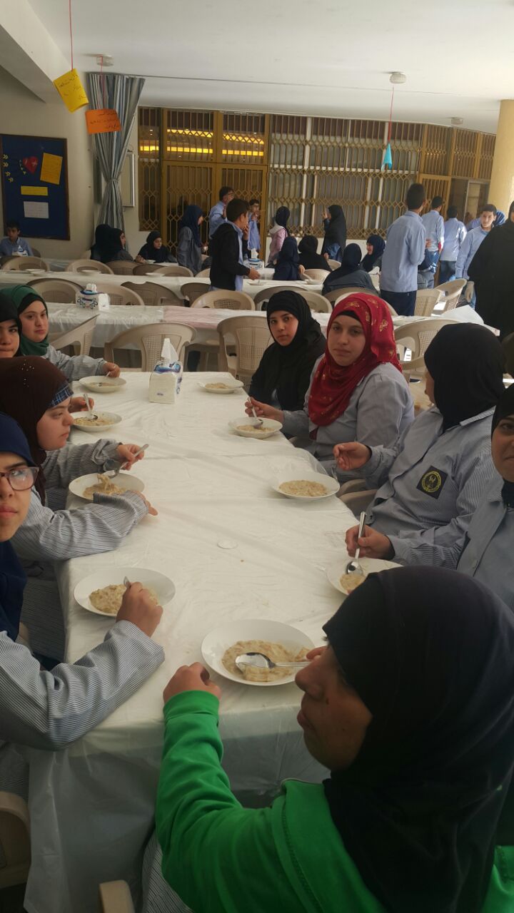 في سياق الأنشطة المستمرة سعياً لدمج ذوي الحاجات الخاصة مع الطلاب الأسوياء واجتماعياً، وبمناسبة أربعين الإمام الحسين (ع)، شارك 20 تلميذاً من القسم المهني لمركز الإمداد للتربية المختصة - حاروف بإشراف مربيتهم في إعداد الهريسة في مدرسة المصطفى (ع) في النبطية، بمشاركة العديد من أقرنائهم.