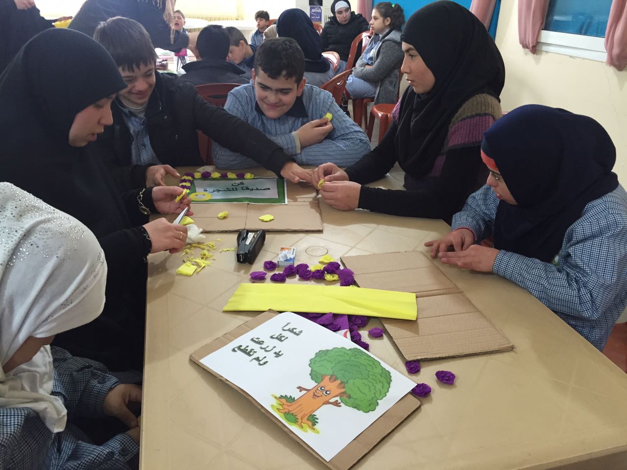 بمناسبة اليوم العالمي للشجرة أقام قسم الأنشطة في مركز الإمداد للتربية المختصة - حاروف، نشاطاً لطلابه في القسم الأكاديمي عبارة عن زوايا تضمنت فقرات: تلوين كلمة يوم الشجرة، صناعة كادر صورة للأشجار، تصوير الأشجار، زراعة ورد وشجيرات في أكواب وقناني بلاستيكية، تزيين عبارات توعية ولصقها في حديقة المدرسة.