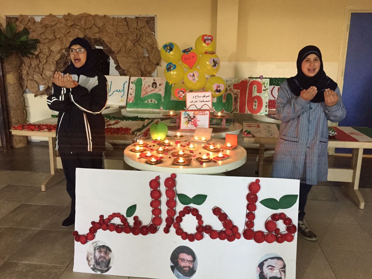بمناسبة الذكرى السنوية للقادة الشهداء وفي أجواء انتصار الثورة الإسلامية في ايران أقام قسم الأنشطة في مركز التربية المختصة -حاروف- نشاطاً فنياً عن الشهداء القادة وعن انتصار الثورة، شارك فيه جميع طلاب المركز وتم خلاله إضاءة الشموع وقراءة ايات قرآنية عن أرواح الشهداء تلاها عرض لكل صف عن العمل الفني الذي قام به وشرحه للتلامذة، أختتم النشاط بأناشيد عن المقاومة ورفع أعلام حزب الله والجمهورية الإسلامية وجمعية الإمداد..