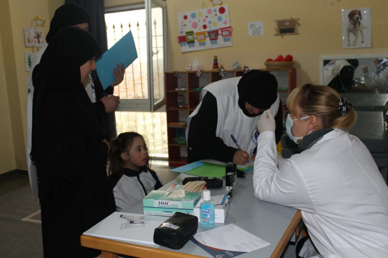 في إطار العملية الرعائية المتواصلة، نظم قسم الإشراف الصحي الإجتماعي في مركز الإمداد للتربية المختصة - حاروف بالتعاون مع الهيئة الصحية الإسلامية معاينة طبية (مجانية) لجميع تلامذة القسم الأكاديمي من قبل فريق طبي مختص ووصف لهم العلاج المناسب..