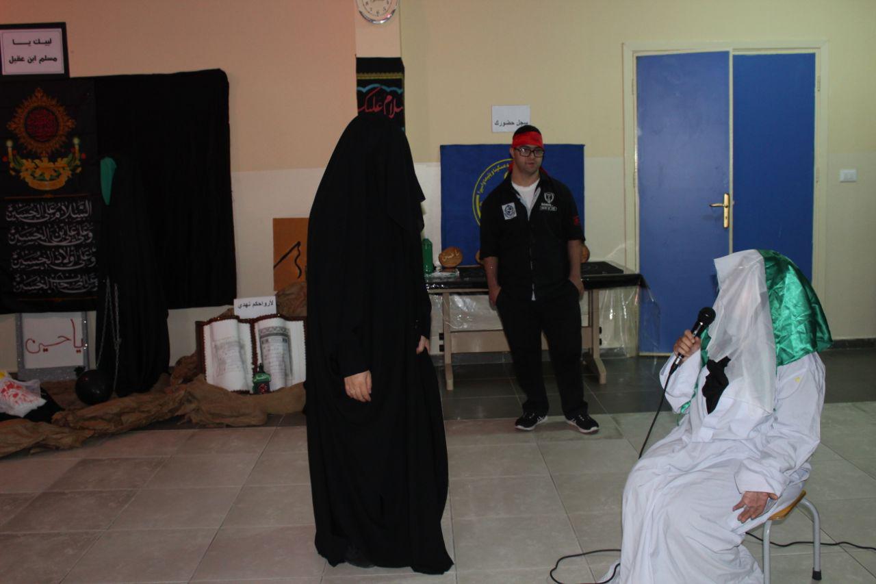 ها قد حلّ الأول من محرم فاتشح المركز بالسواد ليجدد العزاء لرسول السماء.. فأبدعت أنامل المربيات في مركز الإمداد للتربية المختصة - حاروف بانوراما مصغرة داخل المركز بعدها أُقيم إحياءٌ مميزٌ للتلامذة حيث كانت البداية مع "مسلم بن عقيل" تنوعت فقرات البرنامج وحيكت الأحداث العاشورائية بأسلوب مبسط يراعي قدرات التلامذة.. بدأ الإحياء بفقرة سجل حضورك وهي عبارة عن بصمة مشاركة داخل كلمة وامسلماه ثم توالت الفقرات على الشكل التالي: - فقرة لأرواحكم نهدي وهي عبارة عن إهداء سورة قرآنية لمسلم بن عقيل .. - مسرحية مسلم بن عقيل - زائر من كربلاء (على لسان حميدة ابنة مسلم) - منبر حر عاشورائي - مسابقة عاشورائية - حلقات لطم اختتم الإحياء بتناول الحلوى من المضافة العاشورائية..