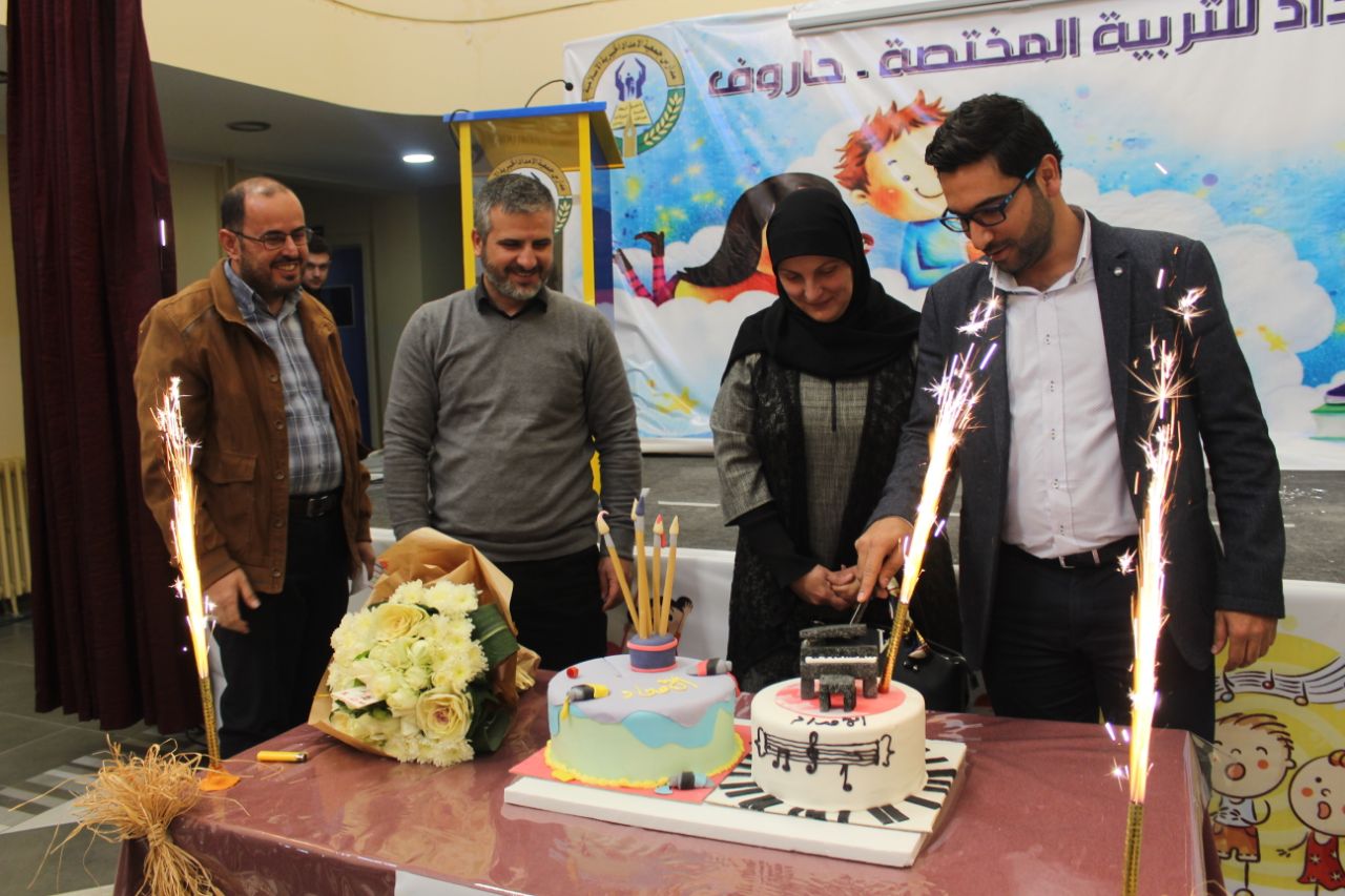 بالفن تُهذّب النفوس وترتقي العقول ..فكيف إذا سُخّر هذا الفن لخدمةِ أطفالٍ مختلفون ولكنهم يختزنون كل معاني الحب والإنسانية.. ولأن رسالة الإمداد تأمين الخدمات والعلاجات لذوي الإحتياجات الخاصة.. برعاية معهد المنار الجامعي وعائلة الشهيد إبراهيم دقدوق ووزارة الشؤون الإجتماعية، وبحضور مدير معهد المنار الجامعي الأستاذ محمد عطوي، الدكتور دقدوق دقدوق، ممثل وزارة الشؤون الإجتماعية السيدة نوال شعبان، مدير موقع النبطية الإخباري السيد حسان قنبر، رئيس اتحاد بلديات إقليم التفاح السيد بلال شحادة، مدير جمعية الإمداد - النبطية الحاج مالك فرحات، المؤهل حسين علوش، مدير بيت الجريح الحاج فارس جرادي، ممثل مدير جهاد البناء الحاج محمود وهبي، ممثلة مندوبة الهيئات النسائية في المنطقة الثانية (النبطية)، جمعية تمكين العيش باستقلالية، المنتدي الإجتماعي الحاروفي، مسؤولة شؤون المرأة في حاروف السيدة رنا عياش، السيدة كارولين زين الدين، الرسام ركان .. بالإضافة إلى حشد من المهتمين و أولياء الأمور، أقام مركز الإمداد للتربية المختصة فرع حاروف، مهرجاناً بمناسبة الإعلان عن افتتاح غرفتي الموسيقى وفن الرسم في المركز وذلك ضمن الخطوات المتتابعة التي تقام في عالم العلاج بالفن.. تخلل الحفل: آيات بينات من القرآن الكريم تلتها التلميذة زهراء نور الدين، النشيدين الوطني والإمداد، ريبورتاج تعريفي عن المركز، كلمة معاهد المنار، استعراض لبراعم المرحلة التحضيرية، كلمة ممثلة وزارة الشؤون الإجتماعية، كلمة مدير مركز الإمداد للتربية المختصة - حاروف، ثم قبل الختام تم تقطيع قالب الحلوى، وقص الحضور شريط الافتتاح للغرفتين حيث استمع الجميع الموسيقى العذبة والأناشيد المحمدية من إنشاد تلامذة المركز.. وفي نهاية الحفل توجه الحضور إلى مطعم مركز الإمداد للتربية المختصة وتناولوا الحلوى وأخذوا الصور التذكارية ..