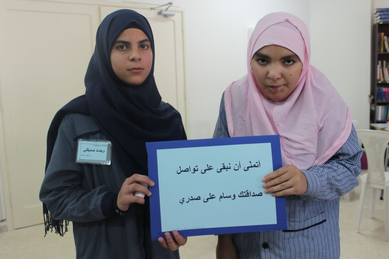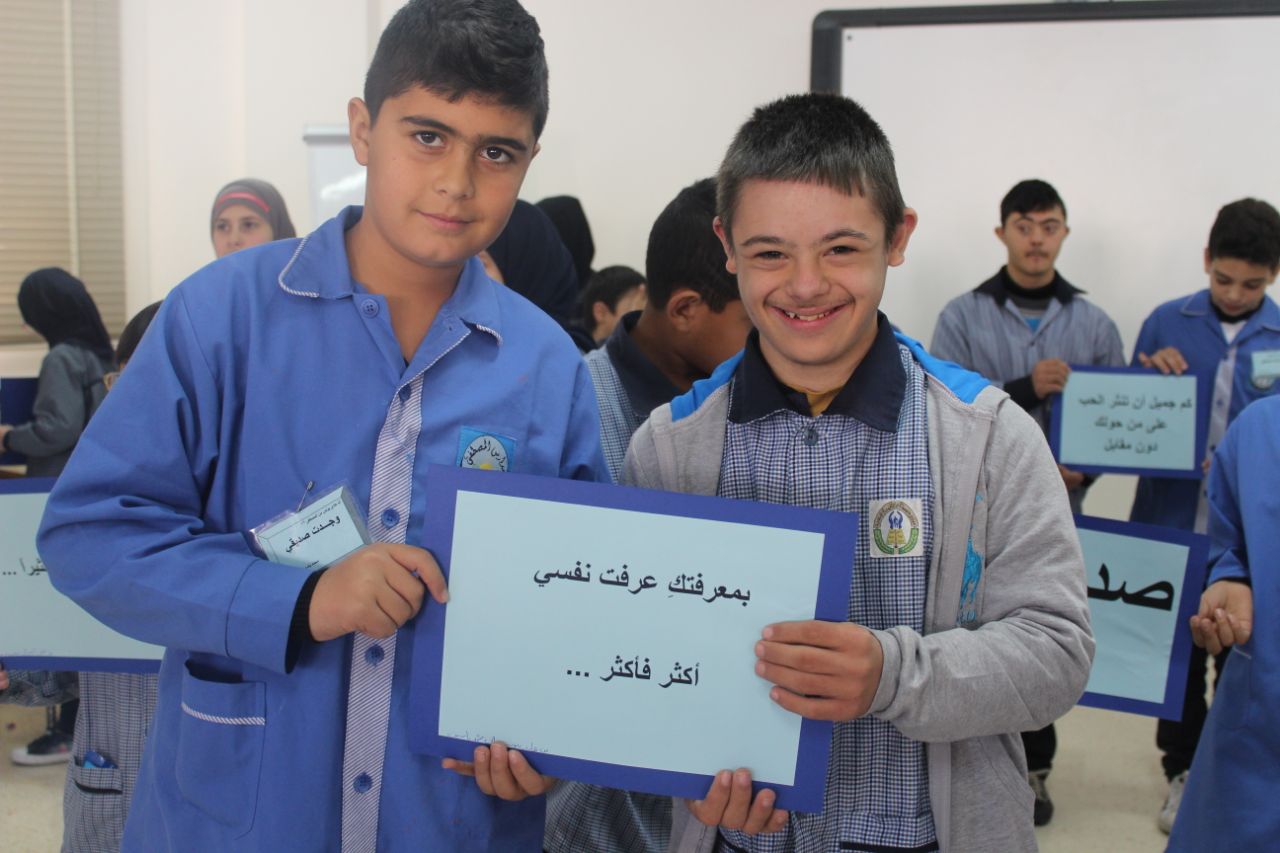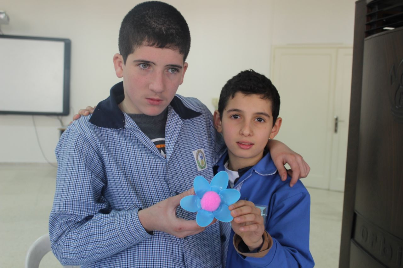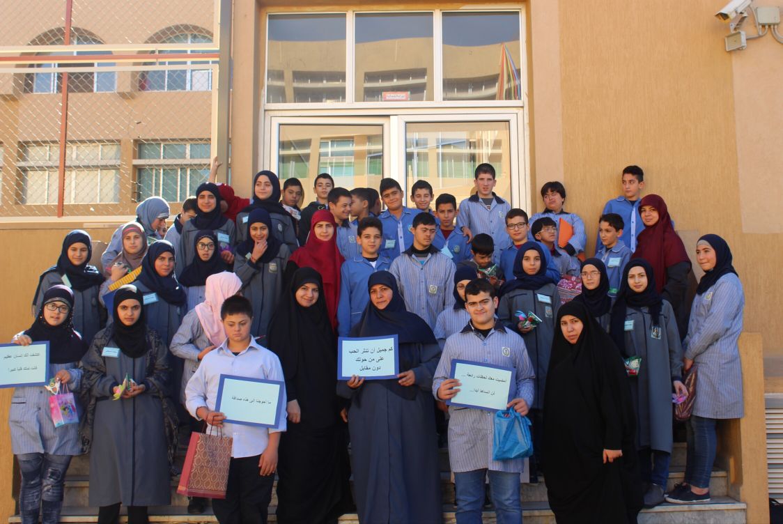 بمناسبة ذكرى ولادة الرسول الأعظم محمد (ص) واليوم العالمي لذوي الإحتياجات الخاصة، أطلق مركز الأمداد للتربية المختصة - حاروف بالتعاون مع ثانوية المصطفى (ص) - النبطية، الدفعة الثانية من مشروع "وجدت صديقي"، والذي يقوم من خلاله كل تلميذ من المركز بالتعرف على صديق له من الثانوية.. لهذا استضافت ثانوية المصطفى (ص) 21 تلميذاً من ذوي الإحتياجات الخاصة حيث تم استقبالهم من قبل تلامذة الصف السادس أساسي بحفاوة وأخذ كل صديق صديقه وانطلقا معاً إلى القاعة ليبدأ النشاط بتبادل البطاقات التعريفية ثم عرض فيديو عن أنشطة التلامذة ذوي الإحتياجات الخاصة وقدراتهم تلاه ريبورتاج تعريفي عن المركز ونشيد "نادانا القمر نادانا".. بعدها جلس كل صديقين سوياً ليقوما بعمل فني من تحضير تلامذة المركز وإهدائه إلى صديقه الجديد حيث تم تبادل الهدايا.. وقبل انتهاء الزيارة تم تزيين عبارات عن النبي محمد (ص) وتعليقها في القاعة ثم تناول الضيافة وأخذ الصور التذكارية.. ومن الجدير ذكره أنه سيتم استكمال هذا المشروع وسيكون هناك تواصل دائم بين كل صديقين وزيارات وأنشطة متبادلة..
