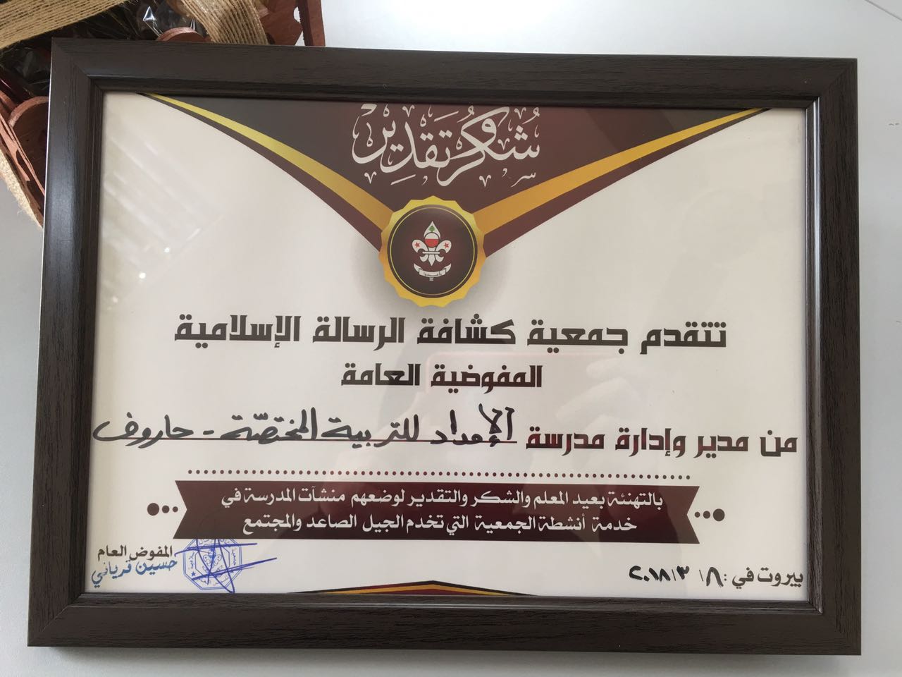 كشافة الرسالة تقدم التهاني لإدارة الإمداد للتربية المختصة - في عيد المعلم