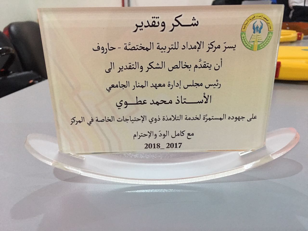 تقديراً للخدمات التي يقدّمها معهد المنار الجامعي، التقى مدير مركز الإمداد للتربية المختصة - حاروف مع رئيس مجلس الإدارة في المعهد الأستاذ محمد حبيب عطوي، حيث شكره على جميع خدماته الإنسانية التي يقوم بها لصالح الأطفال ذوي الاحتياجات الخاصة في المركز..