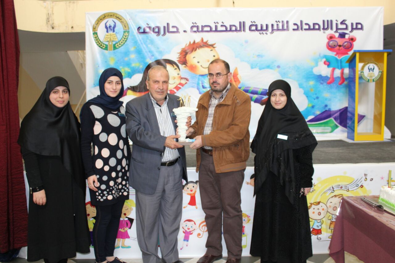 بمناسبة عيد المعلّم زار وفد من معهد أمجاد الجامعي مركز الإمداد للتربية المختصة - حاروف حيث عقد لقاء بين مربيات المركز والمعهد تخلله: - كلمة معاهد أمجاد ألقاها مسؤول العلاقات العامة في أمجاد الاستاذ علي شريفة معايداً المربيات وشاكراً جهودهن لخدمة التلامذة ذوي الاحتياجات الخاصة.. - كلمة مدير المركز الأستاذ ذو الفقار سعيّد شكر فيها معاهد أمجاد على مبادرتهم الجميلة لتكريم المربيات. - تقديم درع من معهد أمجاد إلى مدير المركز. - تقطيع قالب الحلوى من قبل الهيئتين الإداريتين في أمجاد والمركز..
