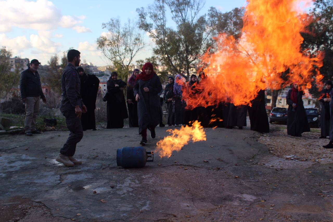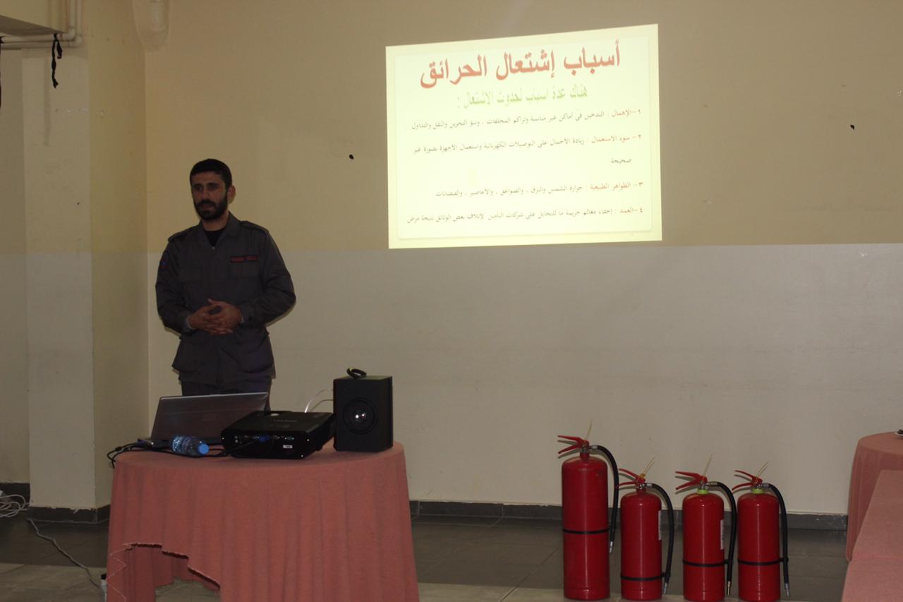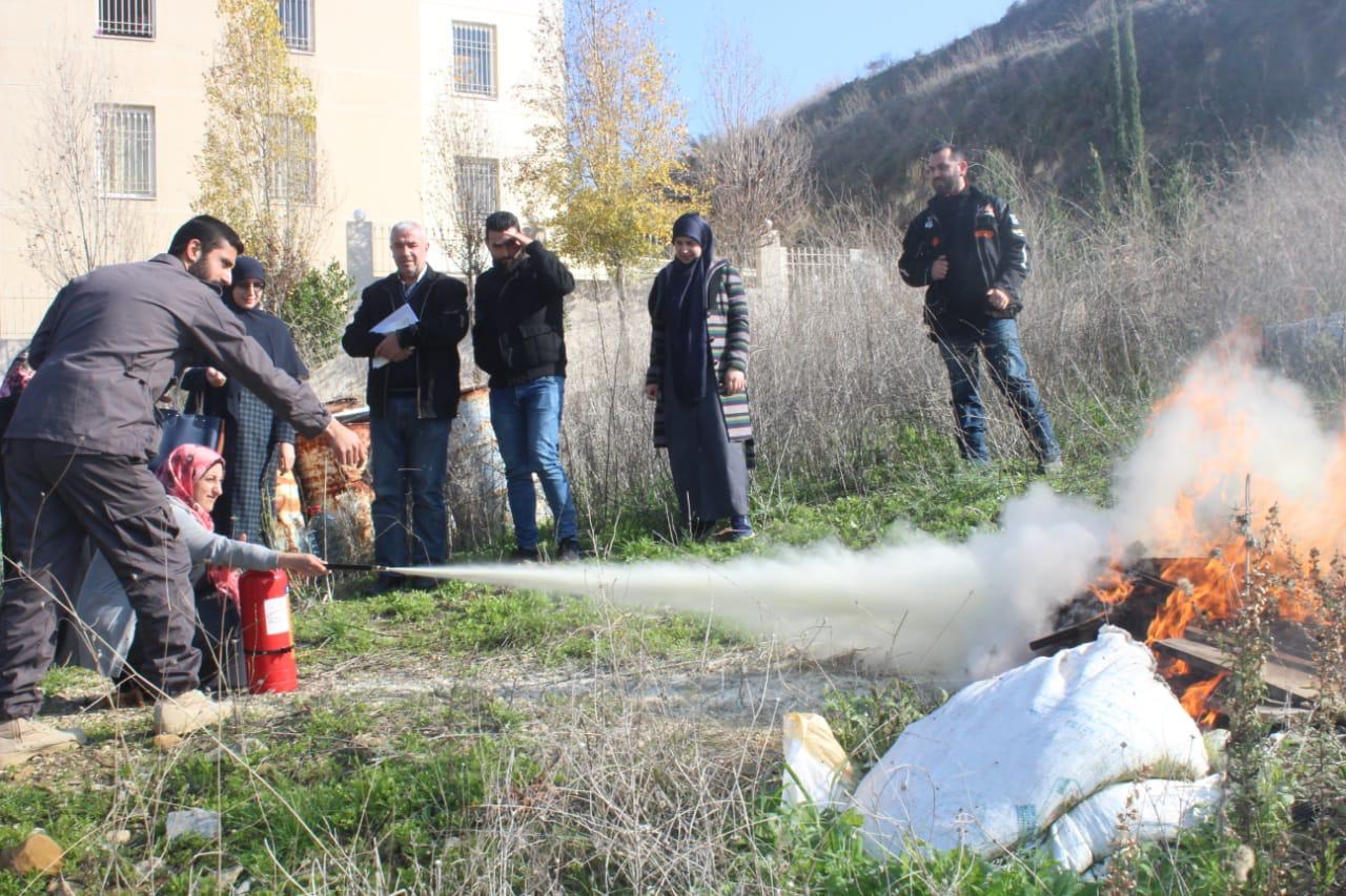 ورشة الإطفاء وعملية الإخلاء عند الطوارئ في مركز الإمداد للرعاية والتأهيل - النبطية