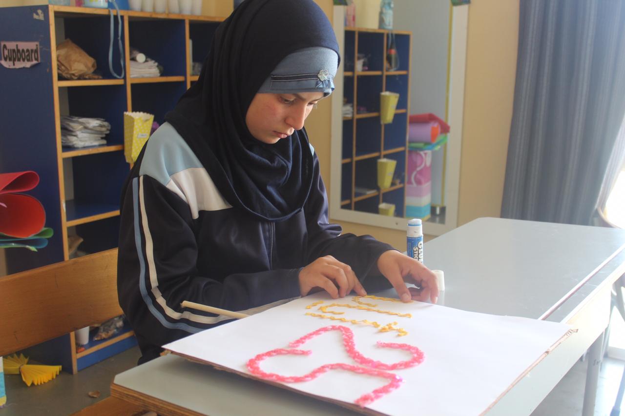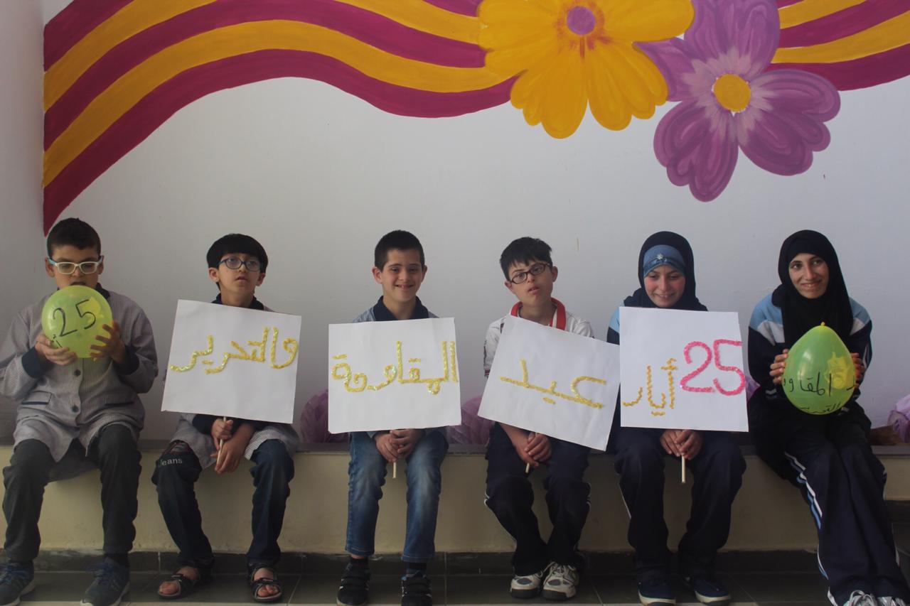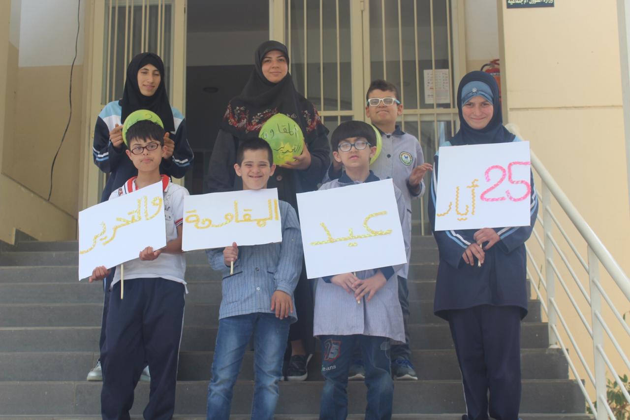 فيما شارك طلاب الصفوف الأساسية في نشاط فني حيث قاموا بتزيين عبارات من وحي المناسبة.