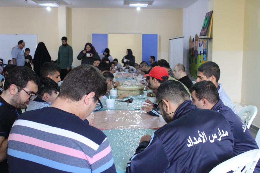 بمناسبة ذكرى أربعين الإمام الحسين(ع)، وبالتعاون مع ثانوية stars college – زبدين، وبحضور وفد من المواقع والقنوات الإعلامية، ضمّ الأستاذ سامر وهبي مدير مكتب الوكالة الوطنية للإعلام في النبطية، الإعلامي علي شبيب مراسل قناة المنار، الأستاذ علي عميص موقع جنوب لبنان، نظم مركز الإمداد للرعاية والتأهيل – النبطية - حاروف وليمة هريسة على حب الإمام الحسين (ع) وأهل بيته (ع)، وقد تخلل النشاط حلقات لطم لتلامذة المركز.