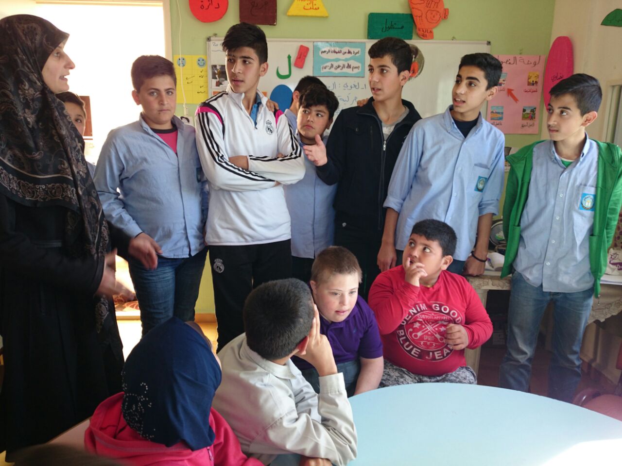 تلامذة صف الثامن أساسي يستفسرون عن بعض الأمور الخاصة بالتلامذة ذوي الاحتياجات الخاصة من مربية صف الرابع تحضيري