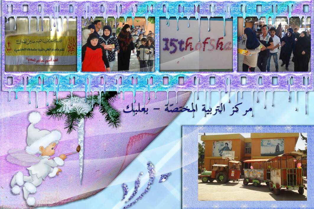 في أجواء 15 شعبان، ذكرى ولادة قائم آل محمد (عج)، نظّم مركز الإمداد للتربية المختصّة - بعلبك، أنشطة شملت: زيارة من قبل تلامذة صفوف المرحلة الإعدادية (الأكاديمي) برفقة المربيات، إلى مدرسة المهدي (عج) بعلبك لتقديم التبريكات و التهنئة بالولادة و توزيع الضيافة على التلاميذ و ركوب التلامذة بقطار المحبة وفتح صداقات مع التلامذة من مدارس أخرى. بالإضافة إلى ذلك نظم قسم الإشراف الصحّي الإجتماعي بالتعاون مع التنسيق المهني والأكاديمي، احتفالاً بأعياد ميلاد التلامذة المولودون خلال أشهر آذار و نيسان و أيار في ظل ولادة الامام المهدي (عج) و التلامذة الذين يحملون إسم مهدي. وقد عمّت الفرحة الأجواء وتناول الجميع الكيك إحتفالاً بالمناسبة.