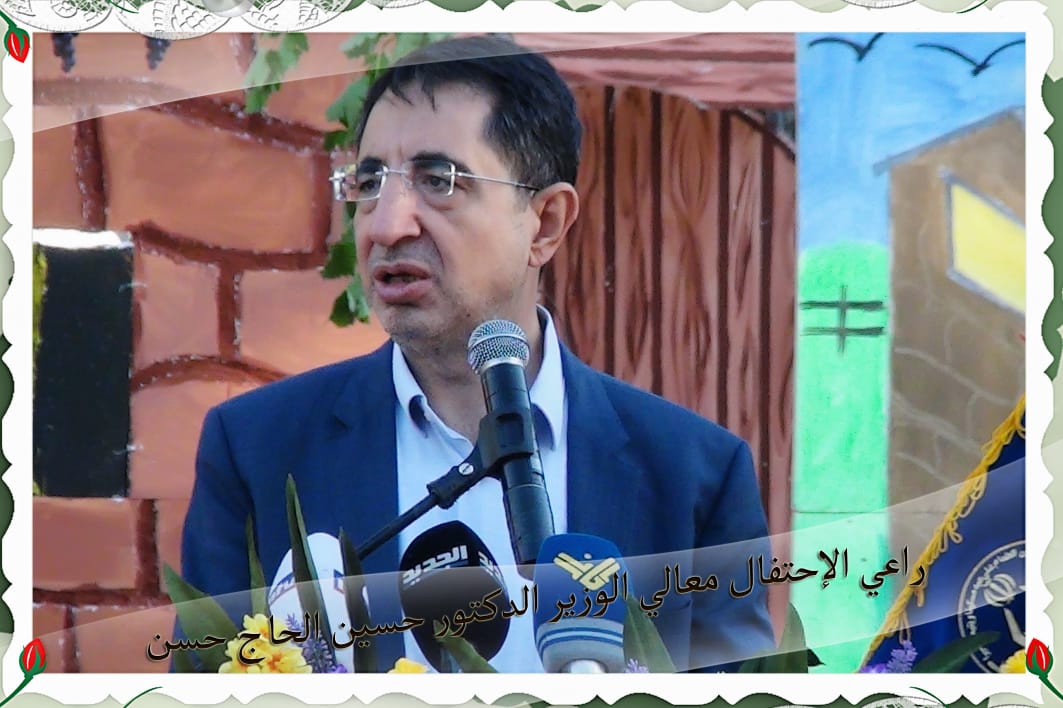 وتحدث راعي الإحتفال الوزير د.حسين الحاج حسن، فقال: "نلتقي اليوم في مجمّع يقوم بأنشطة تُعنى بذوي الإحتياجات الخاصّة، نشكر جمعية الإمداد على جهودها المبذولة خصوصًا مع هذه الفئة من الناس. هذه المؤسسة هي من بركات الإمام الخميني (قدس)، فهي تحتاج إلى دعم وعلينا أن نقف إلى جانبها". وأضاف: "هؤلاء التلاميذ هم أبناؤنا الذين يحتاجون إلى عناية خاصّة منّا، وعلينا أن نقدّم لهم كأفراد وكعائلات وكمجتمع وكحكومة العناية الخاصّة".