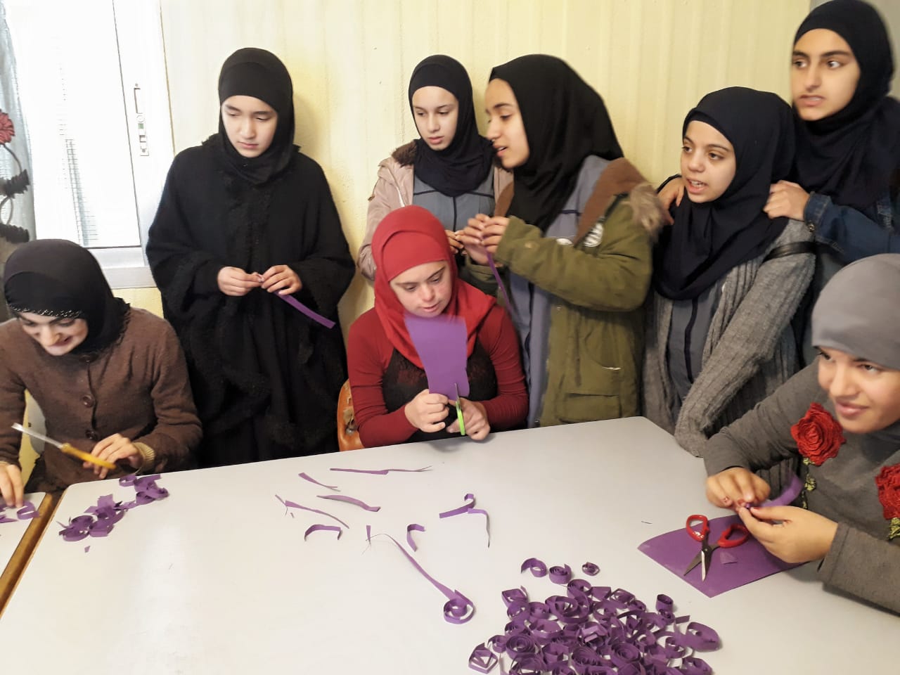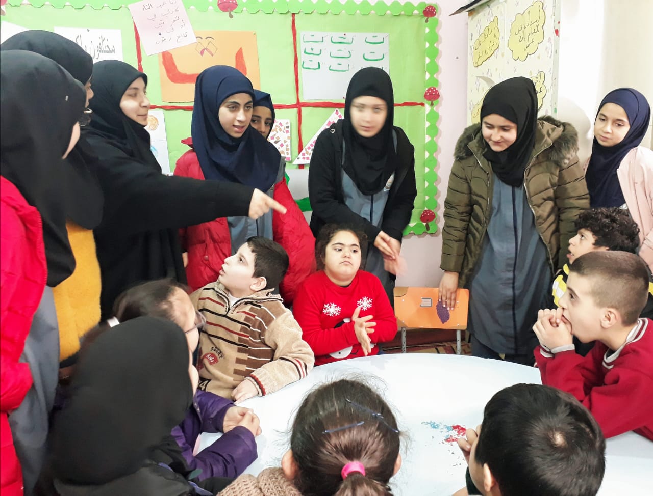 - جولة لطالبات الثانوية على أقسام المركز، للتعرّف على قدرات التلاميذ ذوي الاحتياجات الخاصة ومشاركتهم الأنشطة داخل الصفوف.