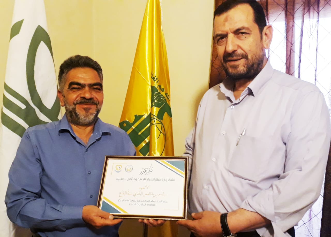 زار السيد ماجد زغيب مدير مركز الإمداد للرعاية والتأهيل – بعلبك، مدير العمل البلدي (في حزب الله) في البقاع الشيخ مهدي مصطفى، حيث شرح زغيب أبرز الأنشطة المقدّمة للتلامذة ذوي الإحتياجات الخاصة في مركز الإمداد في القسمين الخارجي والداخلي، وطرق التعاون لخدمتهم.