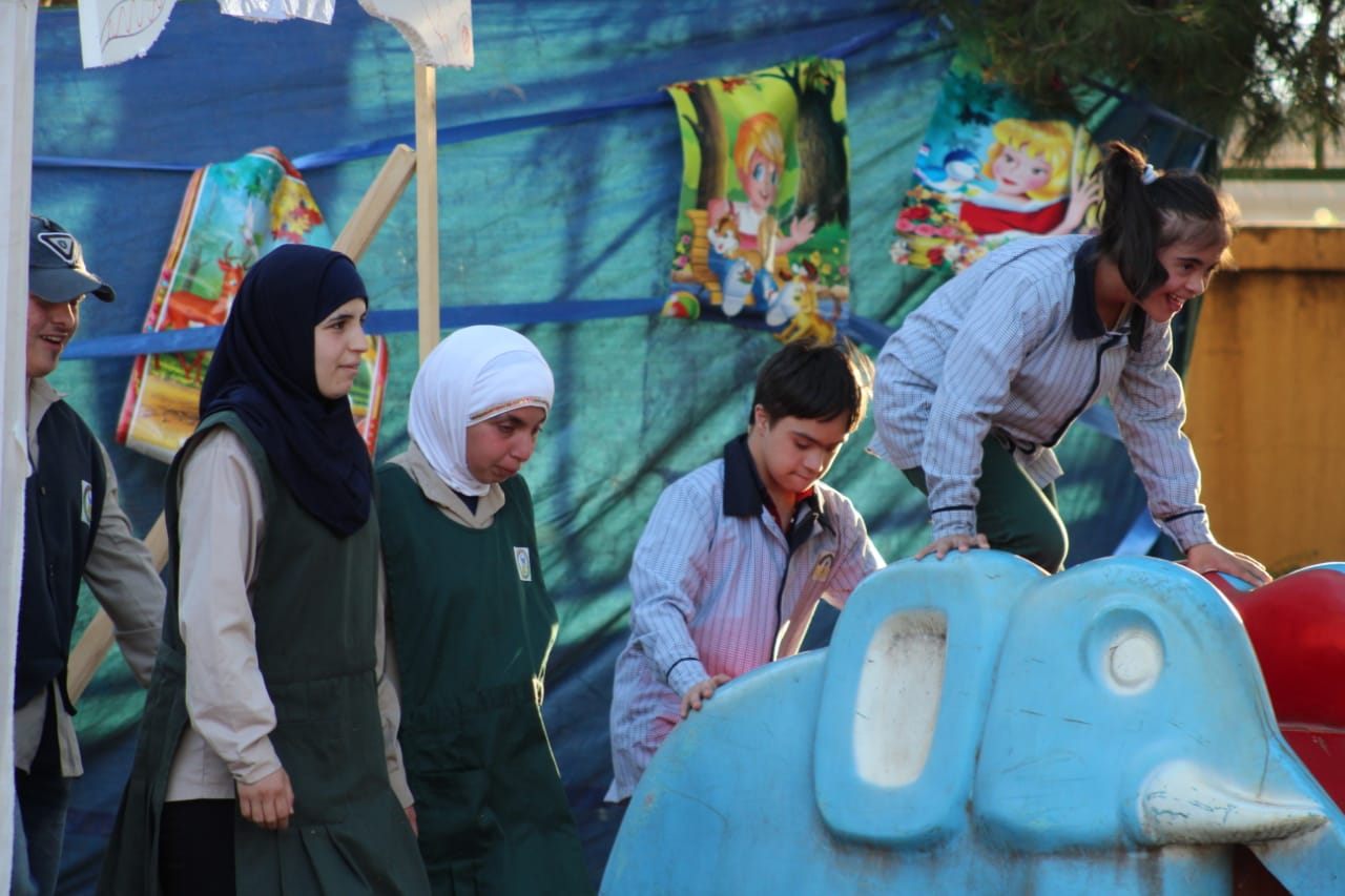 ثم قدّم تلامذة المركز من ذوي الإحتياجات الخاصة عرضاً مسرحياً، ليتم بعده قص شريط افتتاح المعرض الحرفي.