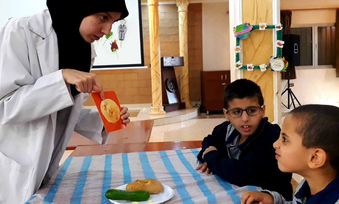 ففي القسم الداخلي، تحدّثت الإختصاصية الصحّية الإجتماعية مع التلاميذ عن الغذاء الصحّي والسليم وتأثيره على الجسم، بعد ذلك شاركوا في تصنيف المأكولات الصحّية والمأكولات الغير صحّية وإعداد سلطة الفواكه المفيدة وتناولها.