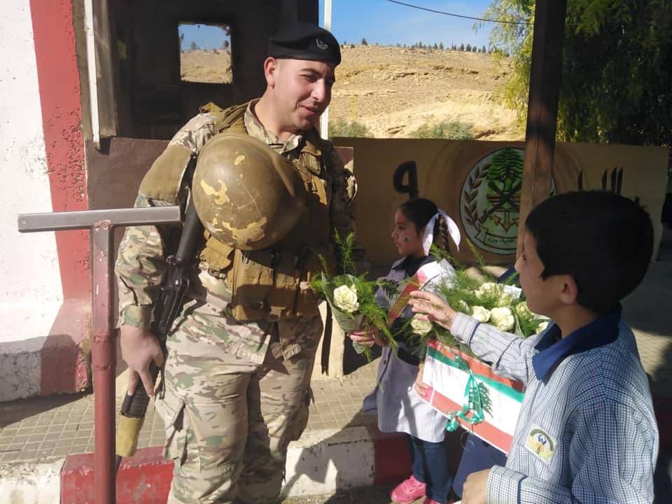 بمناسبة عيدي العلم والاستقلال، زار تلامذة القسم الأكاديمي في مركز الإمداد للرعاية والتأهيل - الهرمل عناصر الجيش اللبناني عند حاجز جسر العاصي في مدينة الهرمل لتهنئتهم بعيدهم، حيث قدموا لهم الورود البيضاء التي ترمز للسلام والحب.