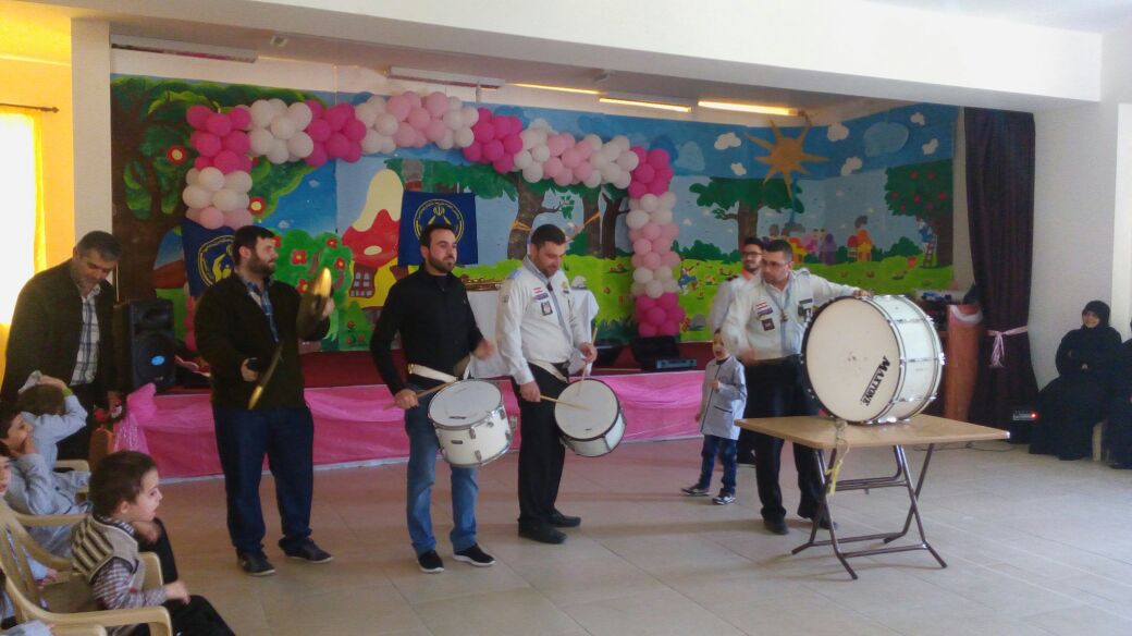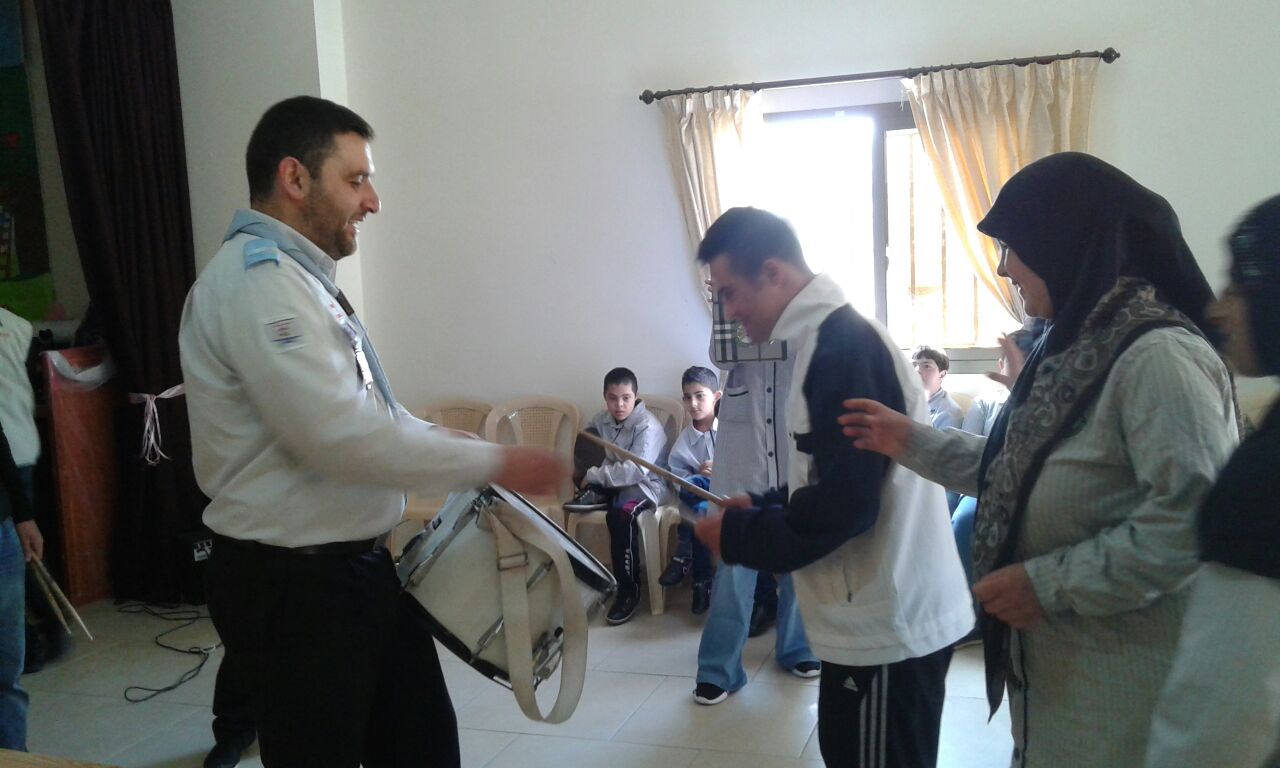 ضمن الأنشطة اللاصفية الهادفة والمتممة لمنهاج الموسيقى، تم دعوة فرقة كشافة الإمام المهدي (عج) إلى مركز الإمداد للتربية المختصة - بنت جبيل، حيث قدموا العديد من الفقرات الغنية بالأنشطة الهادفة الفرحة والمتنوعة: - تصفيقات وصرخات وأناشيد كشفية. - مشاركة التلاميذ في العزف على آلات الموسيقى المختلفة. -عرض لمسرح دمى (قصة دينية هادفة). - رسم على وجه التلاميذ. - نشاط طي الورق. وفي ختام النشاط تم أخذ صورة تذكارية جمعت طلاب المركز وفرقة الكشافة حملت كل معاني الفرح والأمل بتكرار هذا النشاط.