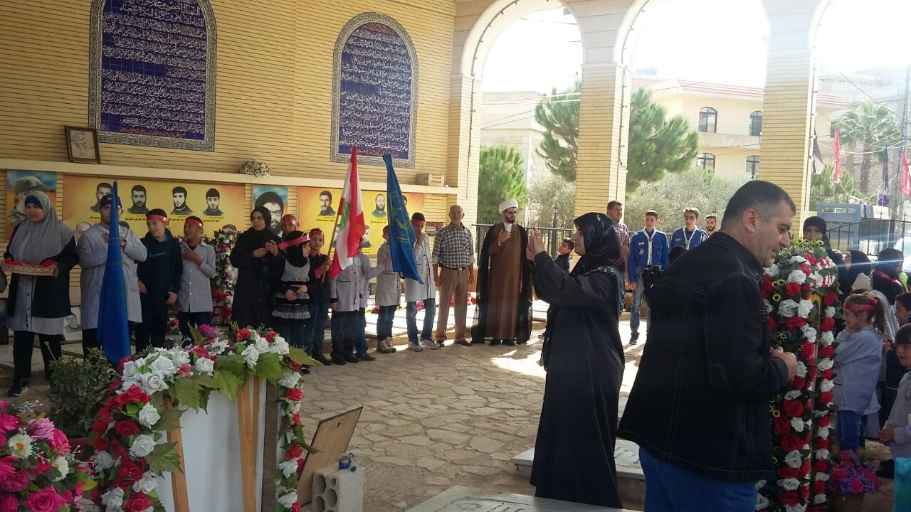 تحية إجلال وإكبار إلى الشهداء الأبرار الذين قدموا دماءهم على مذبح سيد الشهداء أبي عبد الله الحسين (ع). أنتم ستبقون الرمز والعنوان والتاريخ والمستقبل، أنتم نشيد للثورة والحرية، وسيبقى ذكركم يمدنا بالانتصارات ومكللاً بأكاليل العزة والكرامة.. بمناسبة 11 تشرين الثاني، يوم شهيد حزب الله، أحيى مركز الإمداد للتربية المختصة - بنت جبيل ذكرى (يوم الشهيد) عبر مشاركة 70 تلميذاً من المركز في زيارة جماعية إلى روضة شهداء المقاومة الإسلامية في بلدة عيناتا وكان في استقبالهم إمام البلدة ومسؤول الشعبة في حزب الله ورئيس البلدية وبعض أعضائها والدفاع المدني والهيئة الصحية وكشافة المهدي (عج). تخلل النشاط: 1- قراءة سورة الفاتحة وترديد الأناشيد والندبيات من وحي المناسبة. 2- وضع إكليل من الورد على أضرحة الشهداء. 3- إضاءة الشموع. 4- ترديد صيحات "لبيك يا زينب ... لبيك يا حسين".