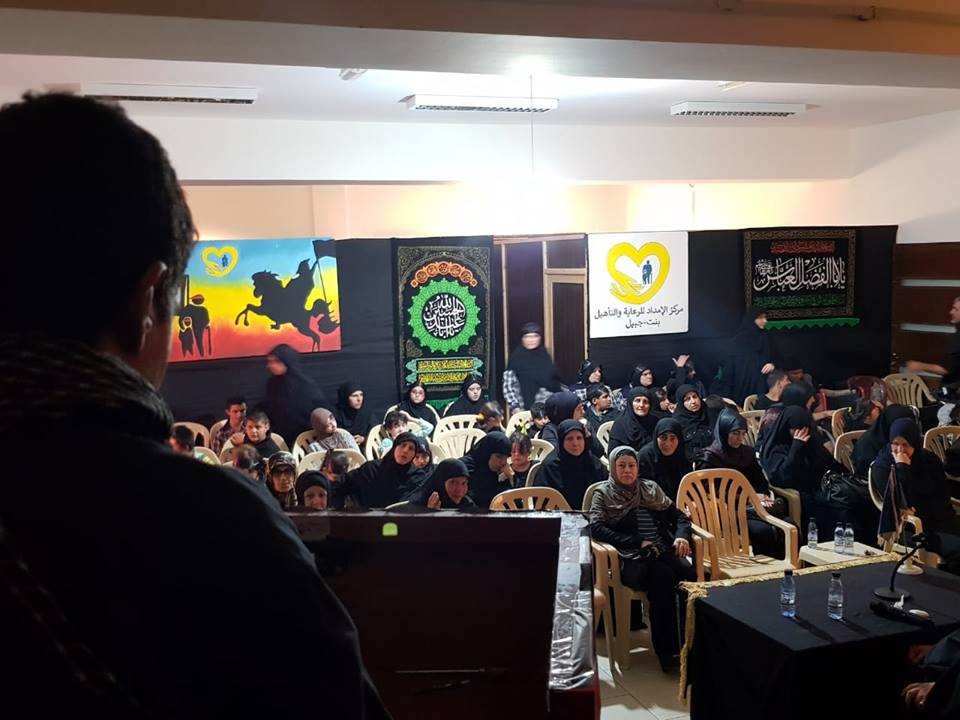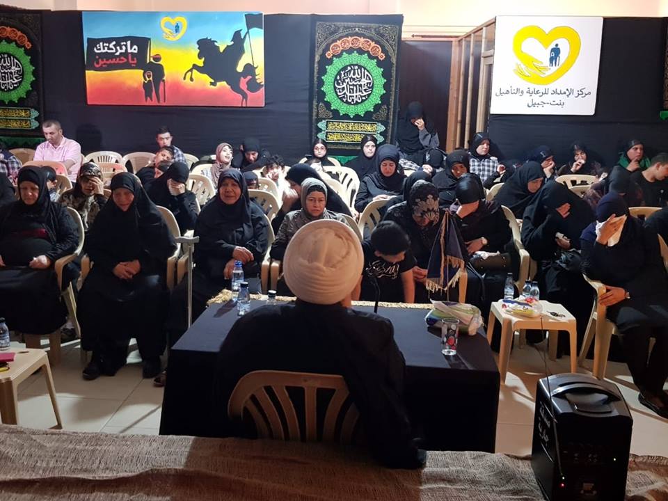 أقام مركز الإمداد للرعاية والتأهيل في بنت جبيل بالتعاون مع الهيئات النسائية في المدينة، وبحضور عدد من فعاليات البلدة، مجلس عزاء حسيني في قاعة المركز، قدم التلامذة ذوي الاحتياجات الخاصة خلاله مراسم تعظيم القرآن الكريم، كلمة لممثلهم، ومن ثم مجلس عزاء حسيني، واختتم النشاط بدعاء الحجة (عج).