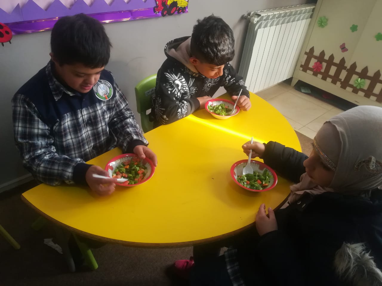 تعزيزاً للأهداف التعليمية والتربوية، نظم مركز الإمداد للرعاية والتأهيل - بنت جبيل العديد من الأنشطة المطبخية، شملت التدريب العملي للصفوف الأساسية على تقطيع السلطة مع الشرح عن أهمية التقطيع والتقشير.