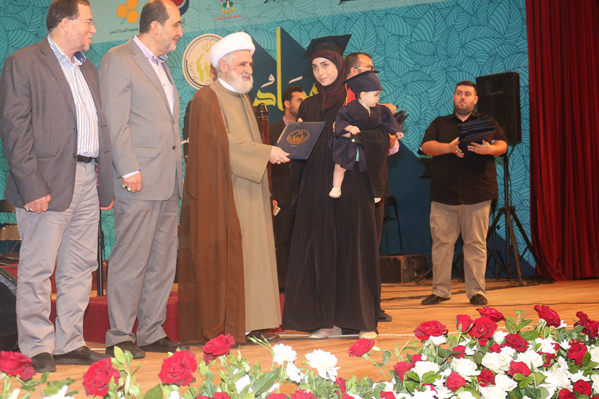 وفي ختام الحفل، تم تكريم الطلاب الـ12 المتفوقين في مختلف الإختصاصات، ثم قدم نائب الأمين العام لحزب الله الشهادات التقديرية لجميع الطلاب الناجحين، إضافة إلى هدية رمزية من أحد الخيرين لكل المشاركين.
