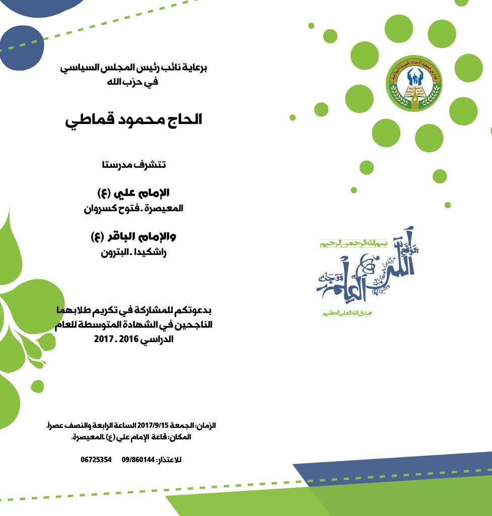 تتشرف مدرستا الإمام علي (عليه السلام)المعيصرة - فتوح كسروانوالإمام الباقر (عليه السلام)راشكيدا - البترون