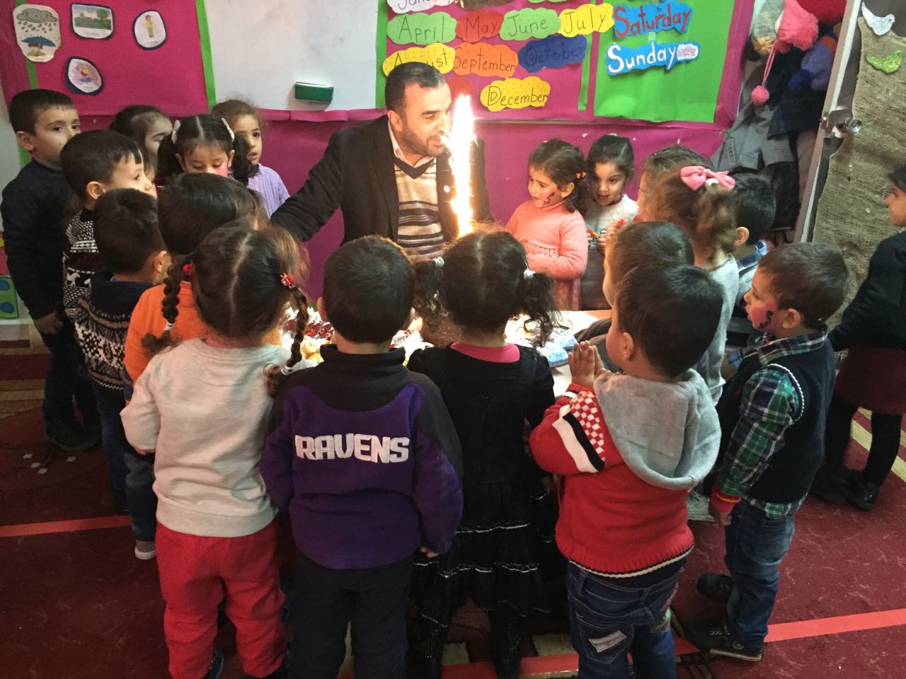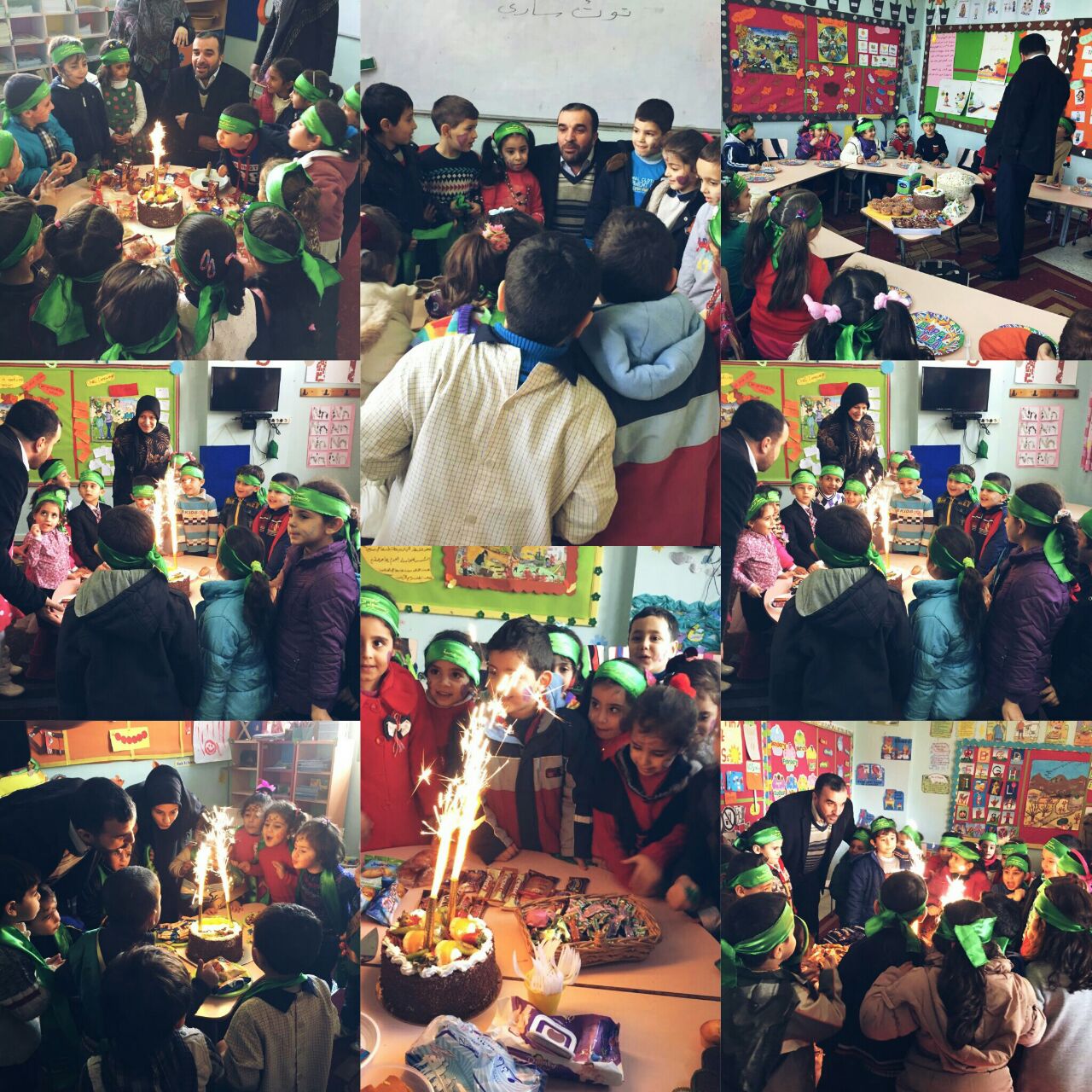 في أجواء ولادة الرسول الأكرم (ص) نظمت إدارة ثانوية الإمام الخميني (قده) سلسلة احتفالات خاصة برياض الأطفال تضمنت: - ألعاب ومسابقات - جولة معادية لمدير المدرسة على الصفوف وتوزيع الهدايا -توزيع تيجان، عصبات وأوشحة لكل التلاميذ - رسوم على الوجه - تقطيع الكيك في أجواء احتفالية محببة - توزيع ضيافة من إعداد التلاميذ - أنشطة مسرحية وزيارة ل "دبدوب" و "نحولة" للقسم - تواشيح من وحي المناسبة - تزيين كلمة محمد وإضاءتها - توزيع هدايا على جميع التلاميذ