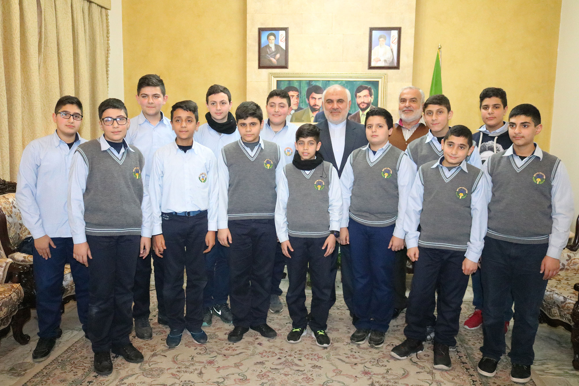 الذكرى 39 لانتصار الثورة الإسلامية: طلاب ثانوية الإمام الخميني (ره) - الحدت يهنئون سفير إيران في بيروت