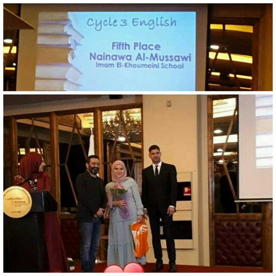 شاركت مجموعة من طالبات ثانوية الإمام الخميني (قده) - الحدت في مباراة التعبير الكتابي 2017 - 2018 (لغة عربية - لغة انكليزية)، التي تنظمها ثانوية فينيكس انترناشيونال سكول - بيروت سنوياً، والتي ضمت عدداً كبيراً من المدارس المتنافسة. وقد تم إعلان النتائج وتكريم الفائزين، منهم من ثانوية الإمام (ره) الطالبتين: نرجس صبرا، التي نالت المرتبة الثانية (لغة عربية) وحصلت على مكافأة نقدية: 750.000 ل.ل و نينوى الموسوي المرتبة الخامسة (لغة انكليزية). اخيراً، تبارك إدارة المدرسة هذه المشاركة الفاعلة والنجاح المميز لجميع الطلاب وتشكر الجهة المنظمة والطلاب الأعزاء والهيئة التعليمية والأهل الكرام...