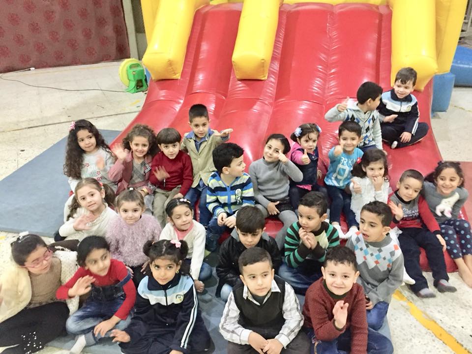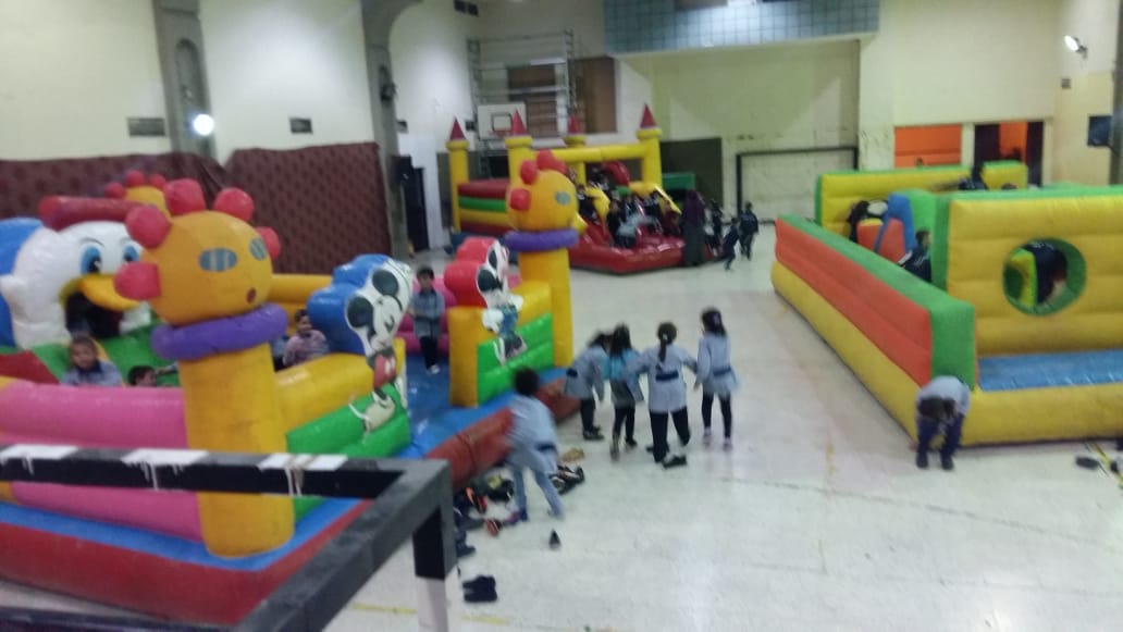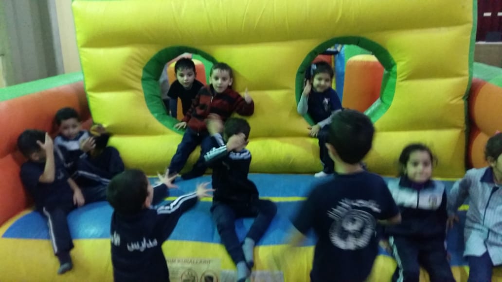 * رياض الأطفال: ألعاب نفخ وتوزيع الحلوى.