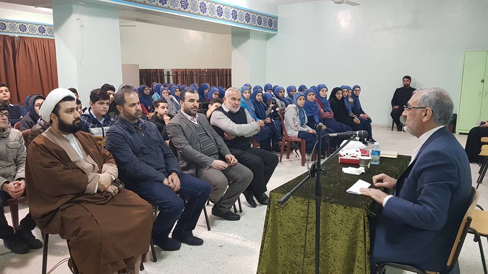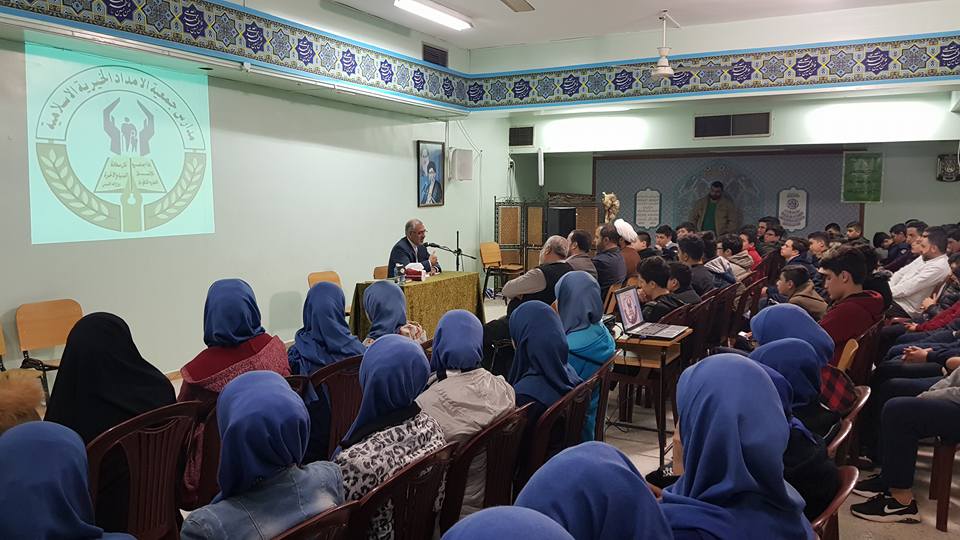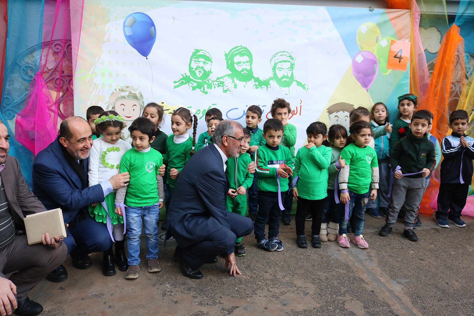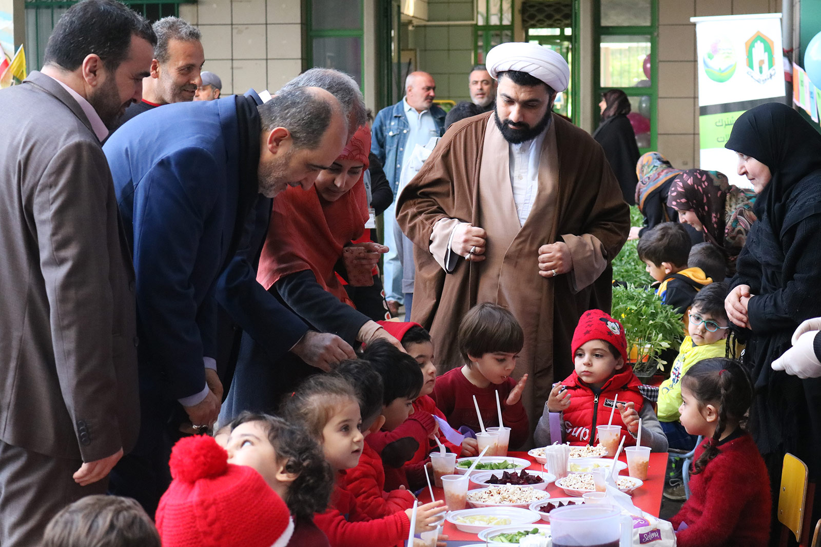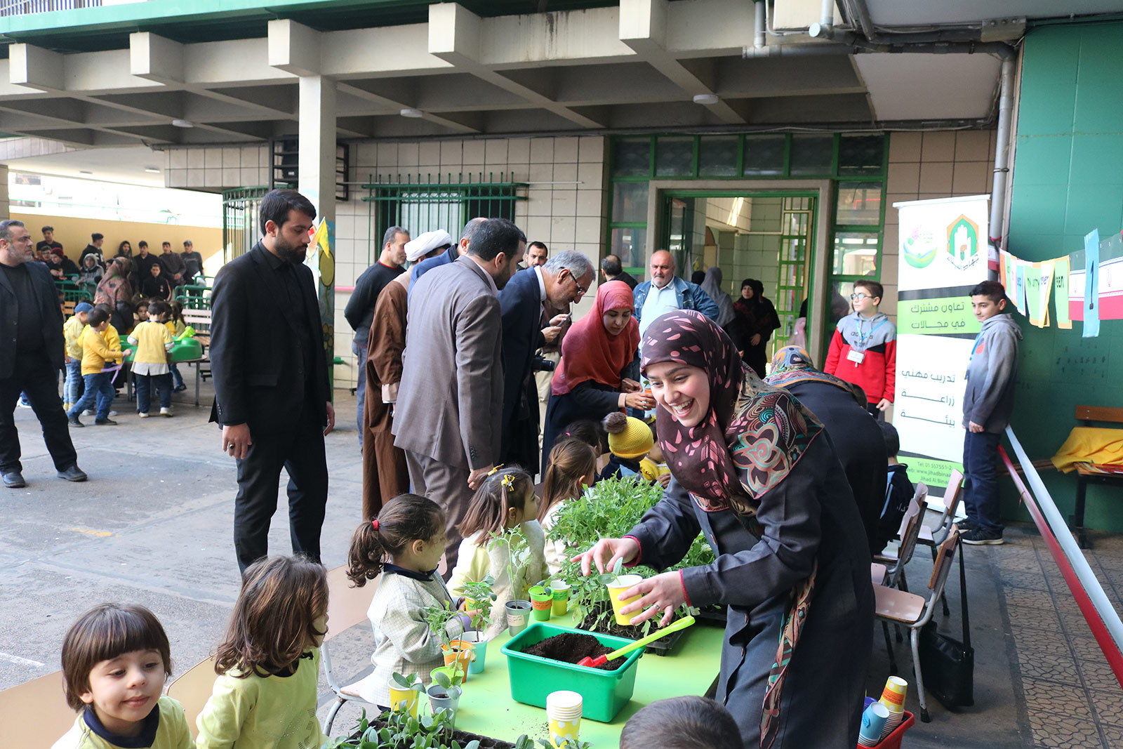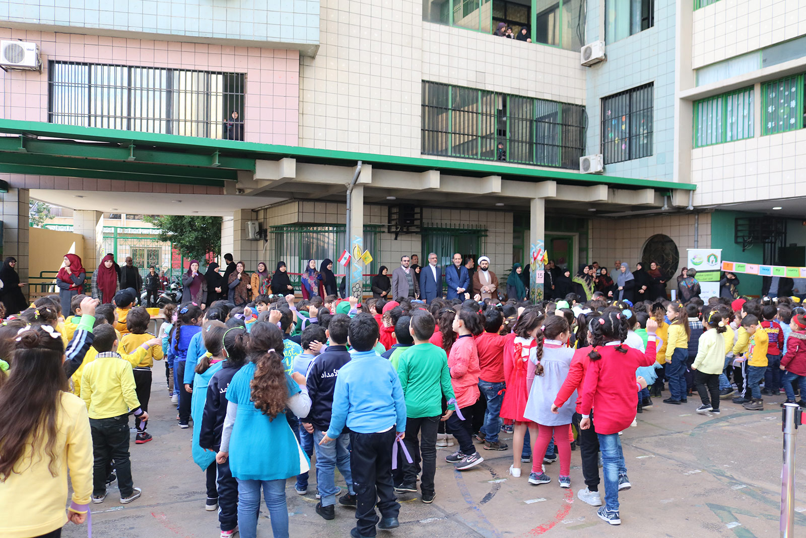 وقد أقيم الاحتفال على مرحلتين بحضور ممثل سفير الجمهورية الإسلامية القائم بالأعمال الأستاذ أحمد حسيني، حيث شارك في الفقرة الأولى 200 طالب من صفوف الثامن والتاسع وتخللها لمحة تاريخية من حياة الإمام الخميني (قده) وقيادته للثورة الإسلامية في إيران، وفقرة سؤال وجواب حُرّ ومباشر بين الطلاب وسعادة القائم بالأعمال. ثم كانت الفقرة الثانية لمهرجانات الحلقة الأولى وذلك بهدف تثبيت التمييز والتصنيف للألوان من خلال ألعاب وزوايا فنية وترفيهية، وقد شارك فيها حوالي 650 طفلاً من رياض الأطفال والصف الأول الأساسي، وشملت: