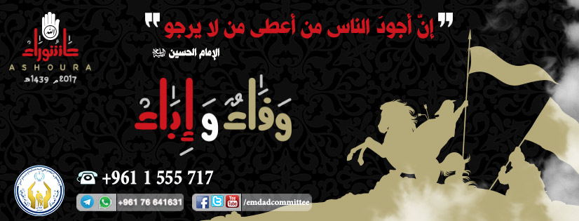 نستقبل مساهماتكم المالية والعينية للإطعام عن روح الإمام الحسين (ع) في كافة فروع جمعية الإمداد. أو عبر الاتصال المباشر: 009611555717 009613822054 واتس اب: 0096176641631