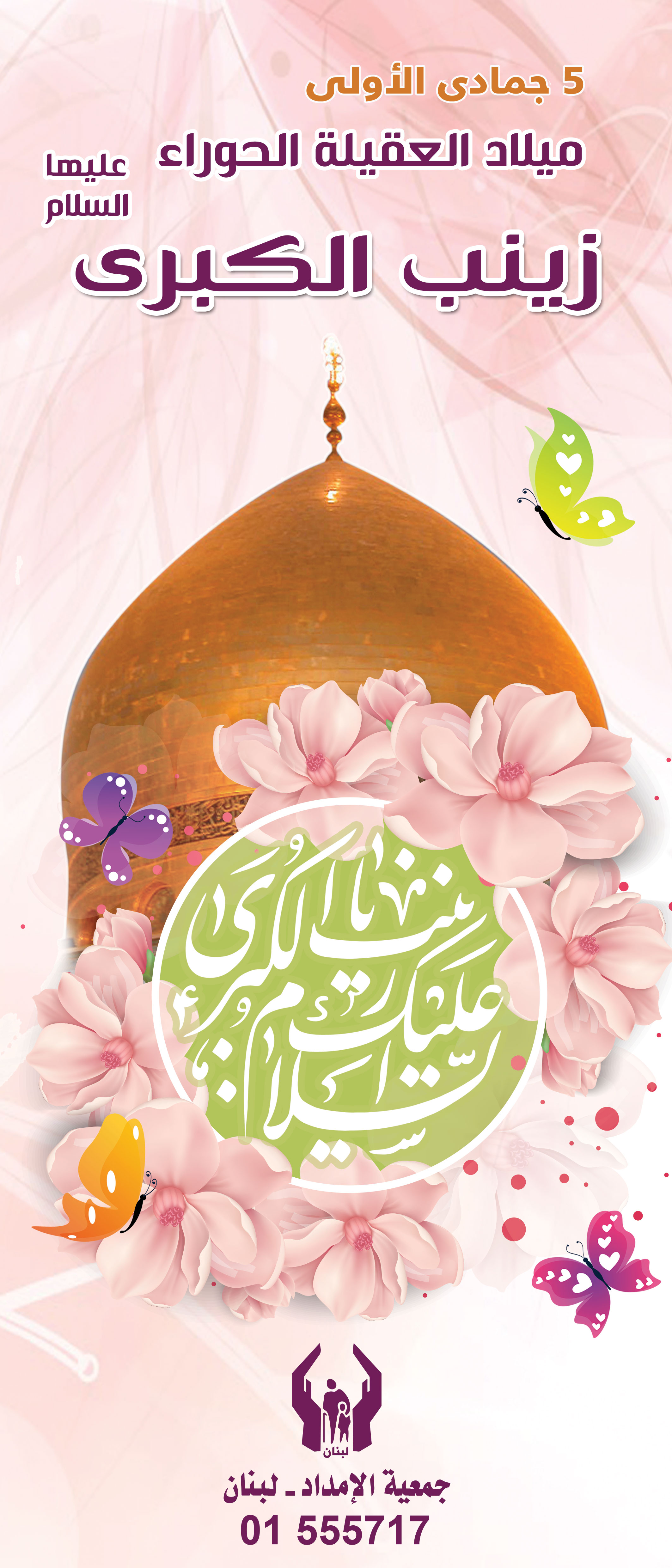 في ذكرى ولادة حفيدة رسول الله (صلى الله عليه وآله) - 5 جمادى الأولى سنة 5 هـ.ق. - بطلة كربلاء السيدة زينب ابنة علي بن أبي طالب (عليهم السلام)، تتقدم جمعية الإمداد بأسمى آيات التهاني والتبريك في هذه الذكرى العطرة، وتعلن عن استمرارها باستقبال مساهماتكم الطيبة لتكفل الأطفال والفتيات الأيتام ممن لا معيل لهم في كافة الأراضي اللبنانية.