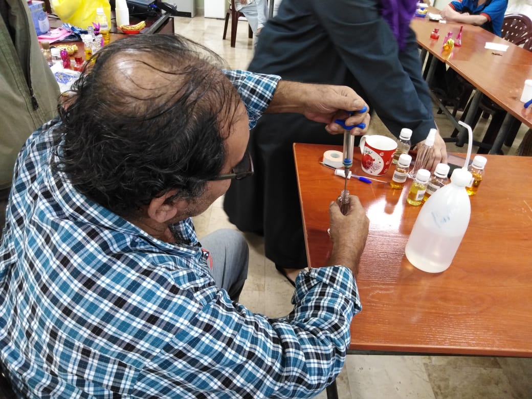 نفذ دار الإمام الكاظم (ع) ورشة للمسنين للتدريب على تركيب الصابون والشمع المعطر مع المدربة زينب شبيب.