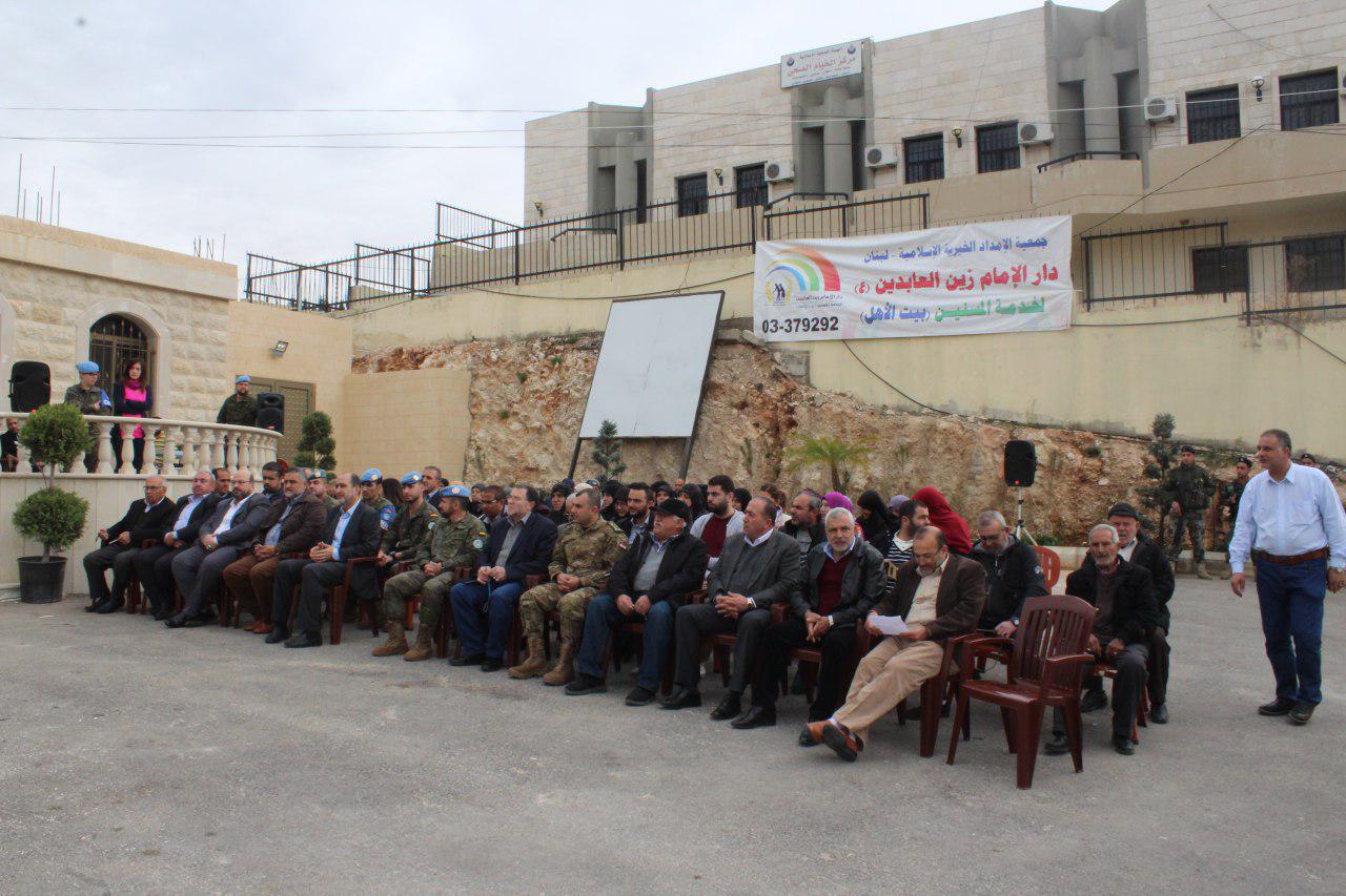 برعاية بلدية الخيام وبتمويل من الكتيبة الإسبانية العاملة في قوات اليونيفيل، إفتتحت جمعية الإمداد الخيرية الاسلامية - لبنان، حديقة دار الإمام زين العابدين (عليه السلام) - لخدمة المسنين - بيت الأهل، بحضور مدير عام الإمداد الحاج محمد برجاوي، قائد الكتيبة الإسبانية المقدم فرنسيسكو خوسيه اسكولانو، مديرة مكتب الشؤون المدنية في الكتيبة الاسبانية السيدة ايفاتوريك مازوريك، رئيس وأعضاء بلدية الخيام و فعالياتها، وجوه إجتماعية، مخاتير، عاملي ومسني الدار، ومدعوين وحشد من أهالي البلدة والجوار. أثنت الكلمات على حاجة المركز الملحة لتقديمات القادرين، لما للمركز من دور في مساعدة المسنين، بدوره الضابط الإسباني أكد بأن اليونيفيل ستبقى تساعد في تقديم الحاجات الضرورية لسكان مناطق عملها، بالتعاون مع الهيئات المدنية وبالتنسيق الكامل مع الجيش اللبناني الشريك الدائم في إحلال الأمان والهدوء في جنوب لبنان.