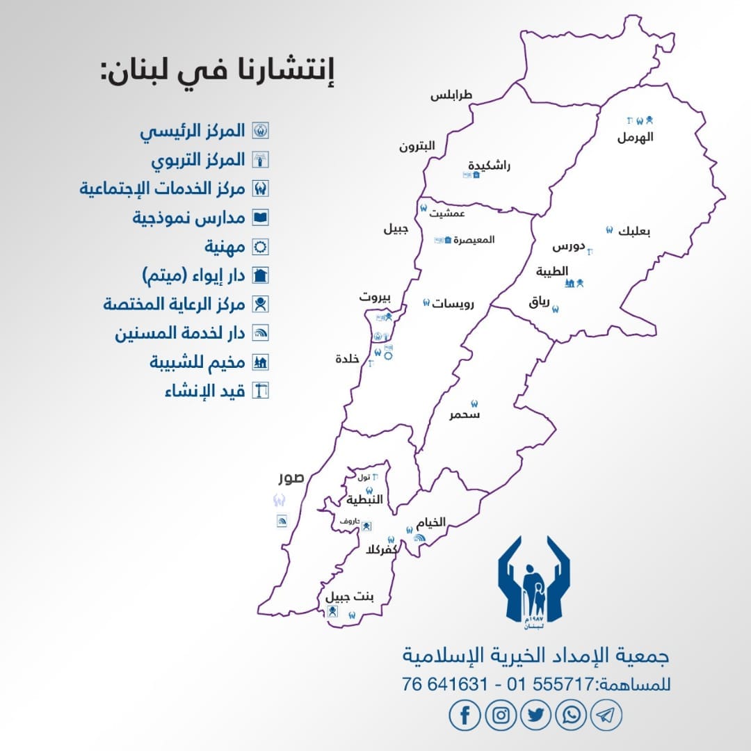 المركز الرئيسي : لبنان - بيروت - حارة حريك(المدخل الغربي) - خلف المجلس - قرب مطعم خليفة - بناية الإمداد