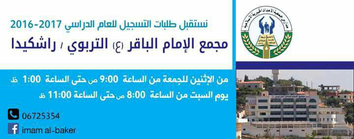 يعلن مجمع الإمام الباقر (عليه السلام) التربوي - راشكيدا (البترون) ع...